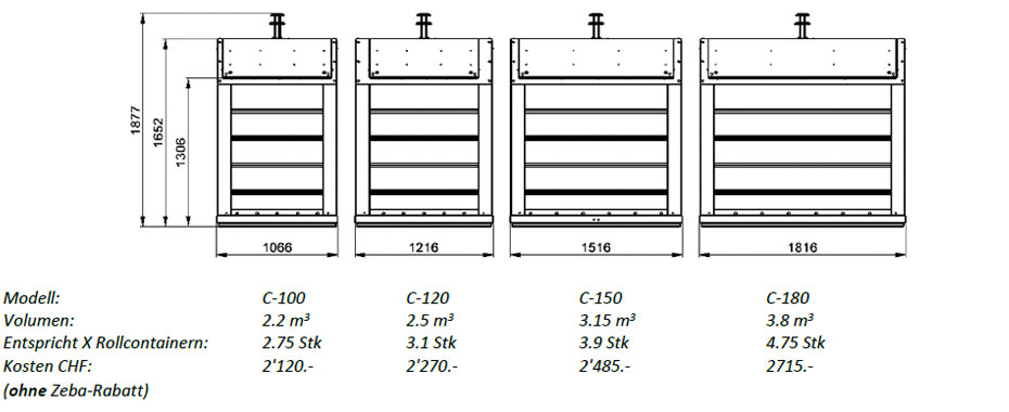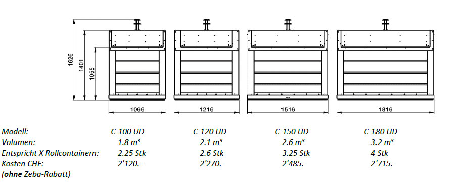 C-100 UD C-100 | 1.8m3 2.2m3 | CHF 2'120.00 |